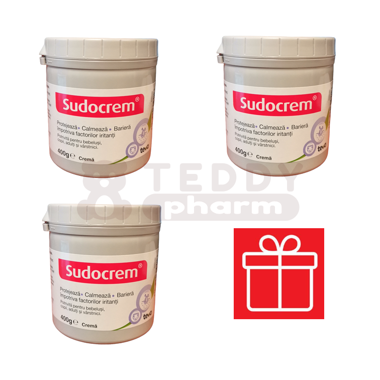 SUDOCREM Antiseptische Heilungs Creme 3 x 400 g + Geschenk